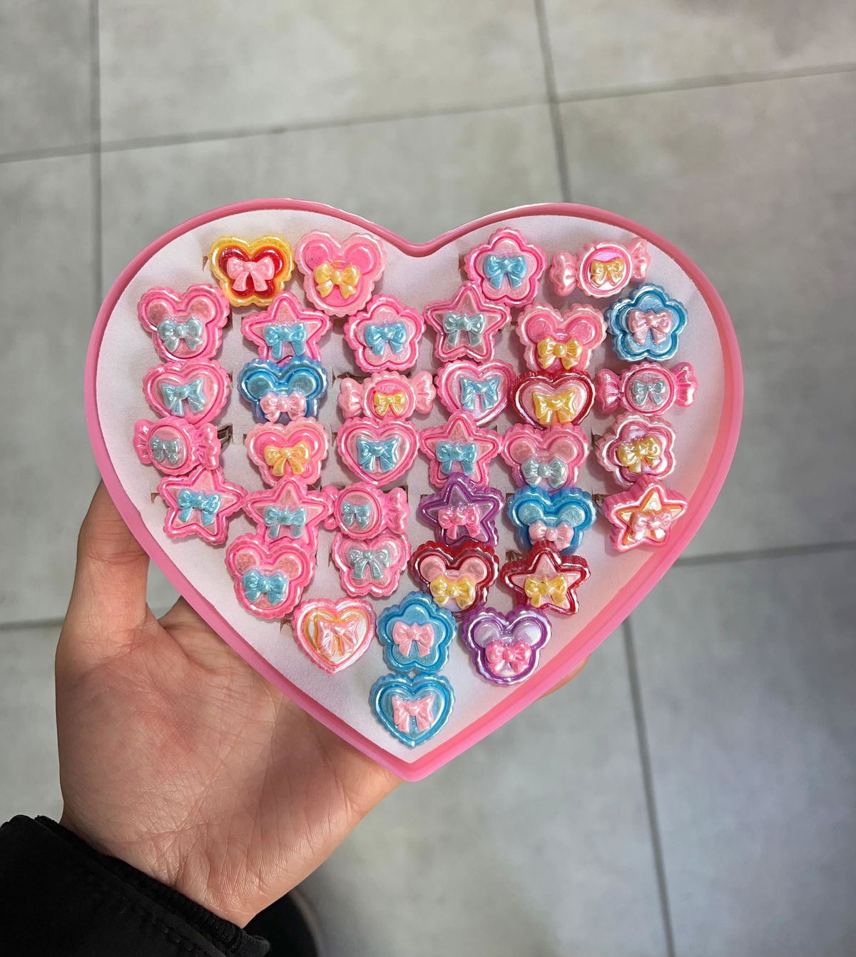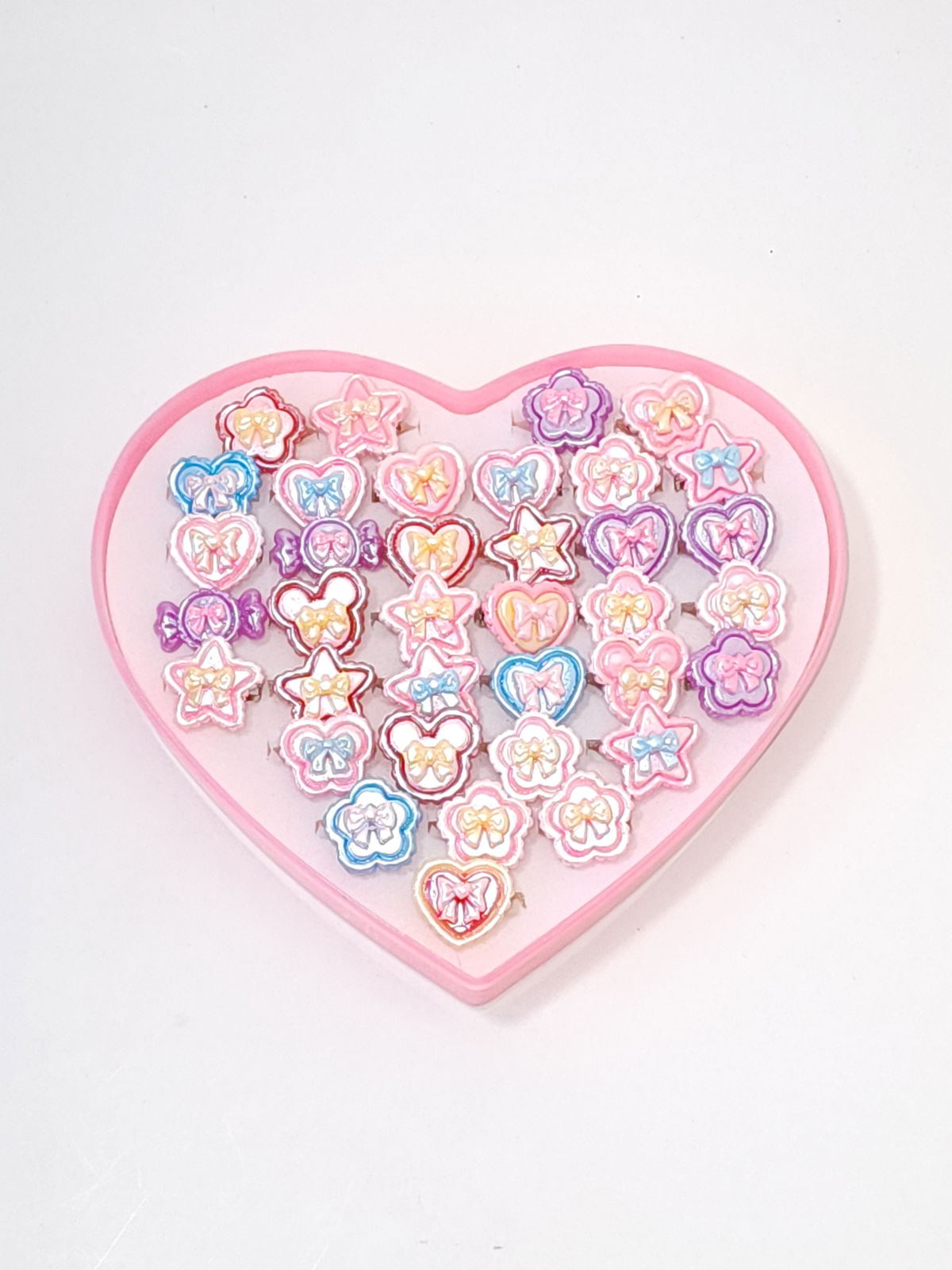 ANILLOS INFANTIL CON APLIQUE X 36 PCS ESTUCHE CORAZON