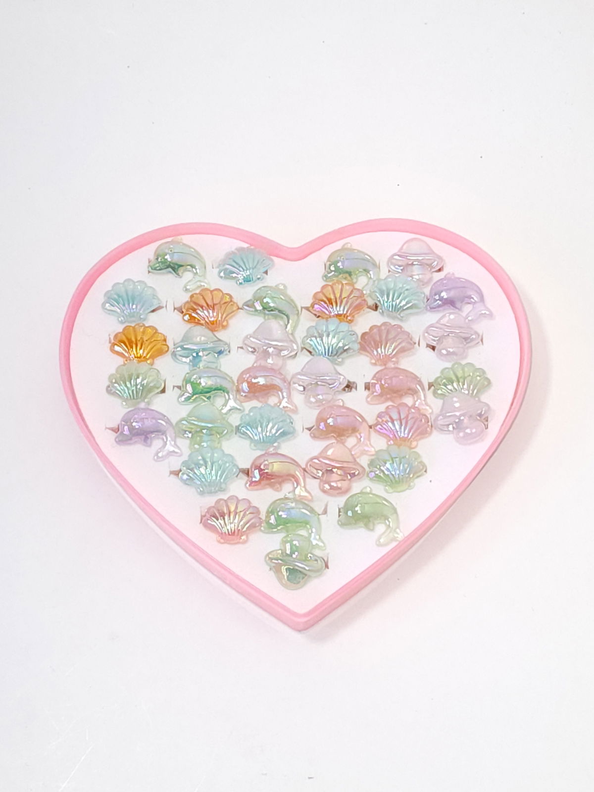 ANILLOS INFANTIL CON APLIQUE X 36 PCS ESTUCHE CORAZÓN
