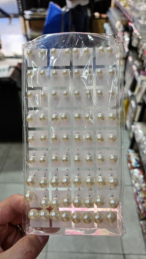 AROS PERLA CON EXHIBIDOR X 36 TAMAÑO SURTIDO BLANCO X CARD.