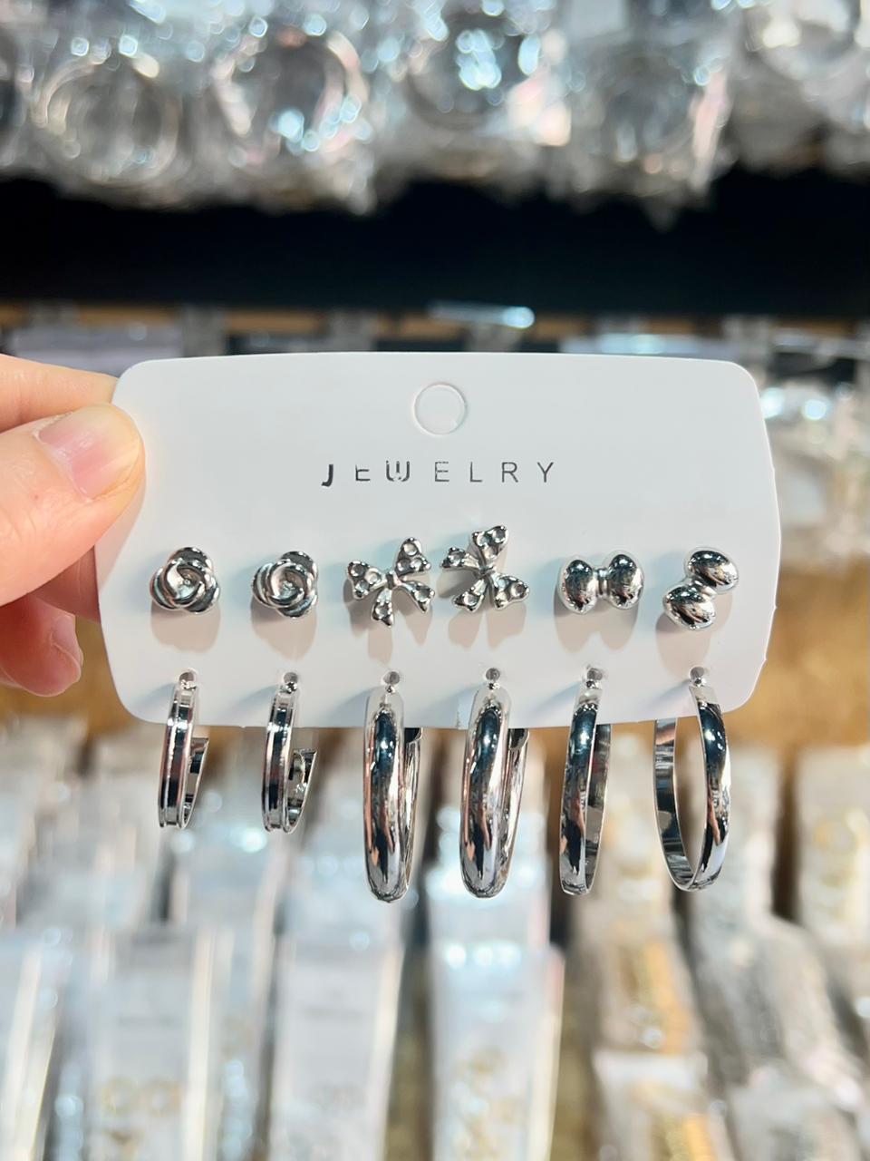 AROS CON PASANTE DE ACERO X 6 PARES X SET PLATEADOS