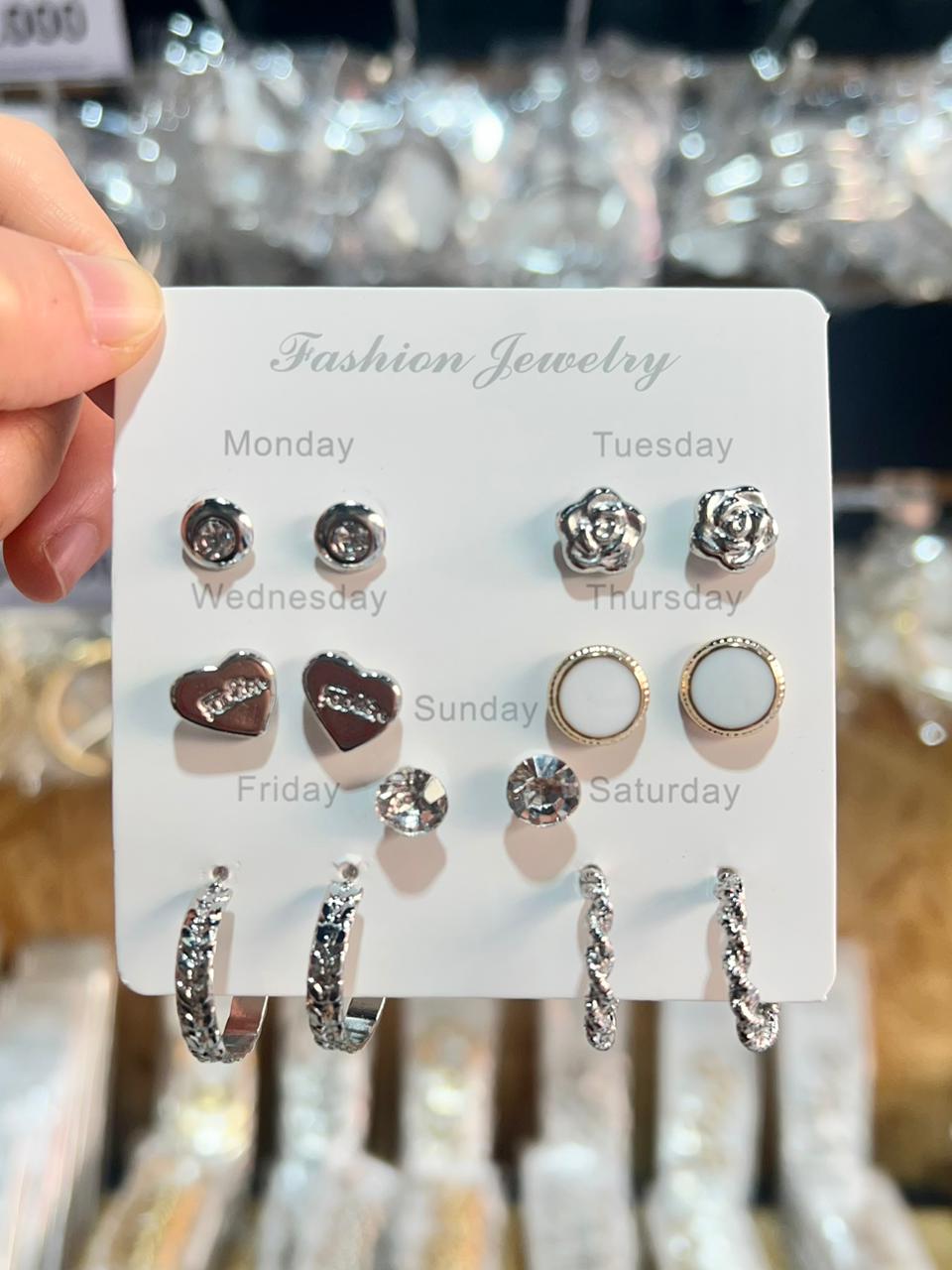 AROS CON PASANTE DE ACERO X 7 PARES X SET PLATEADOS