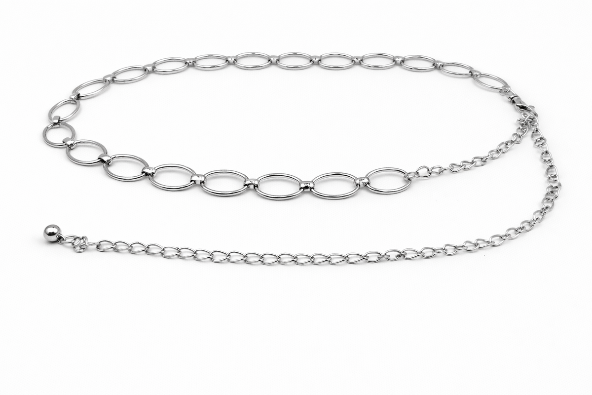 CINTO CADENA DE METAL PLATEADO X UNIDAD