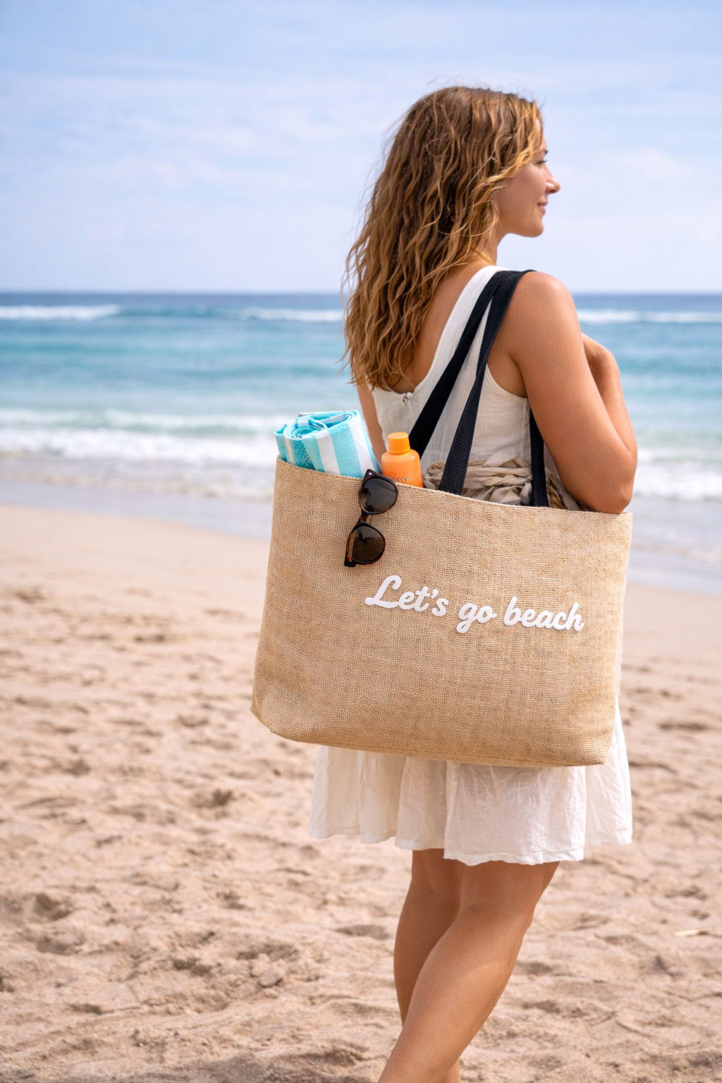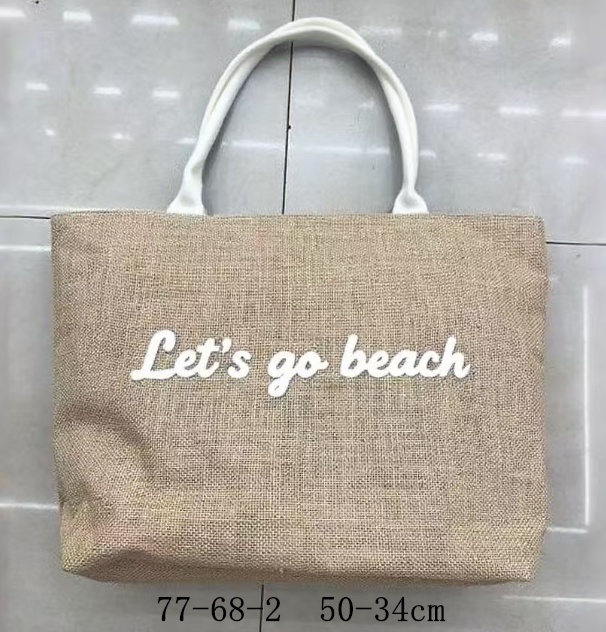 BOLSO DE RAFIA CON LETRAS Y MANIJA BLANCAS X UNIDAD
