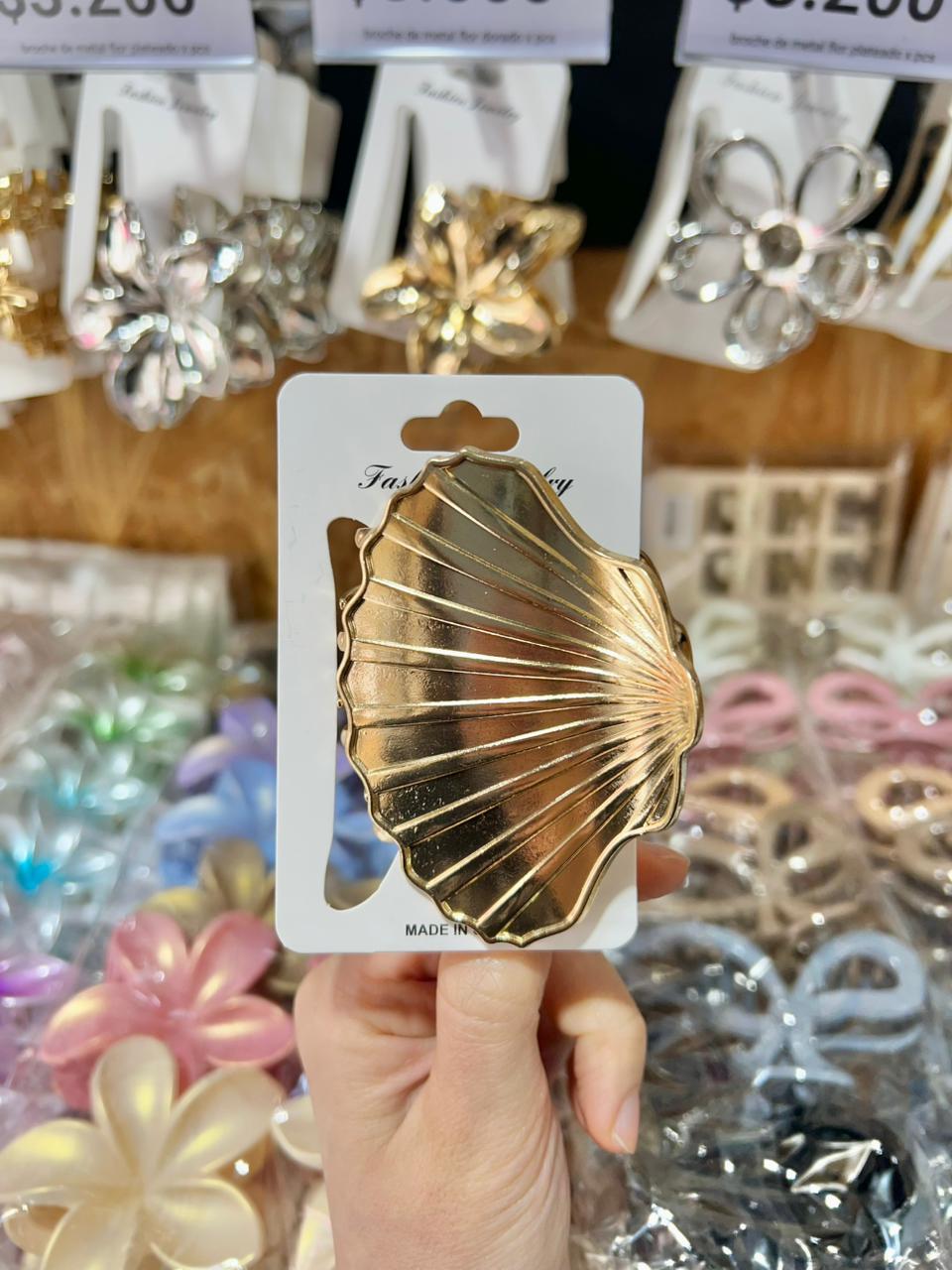 BROCHE DE METAL SHELL DORADO GRANDE X UNIDAD