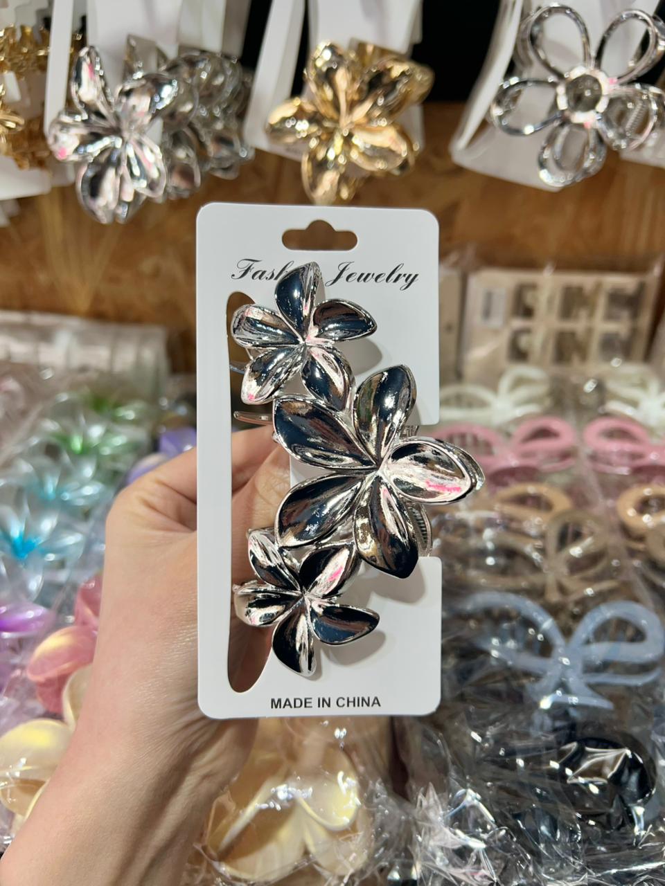 BROCHE DE METAL 3 FLORES PLATEADO X UNIDAD