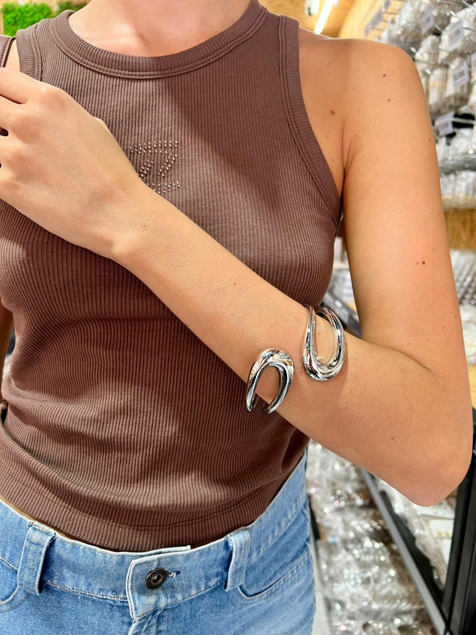 PULSERA CRUZADA DE METAL PLATEADO X UNIDAD