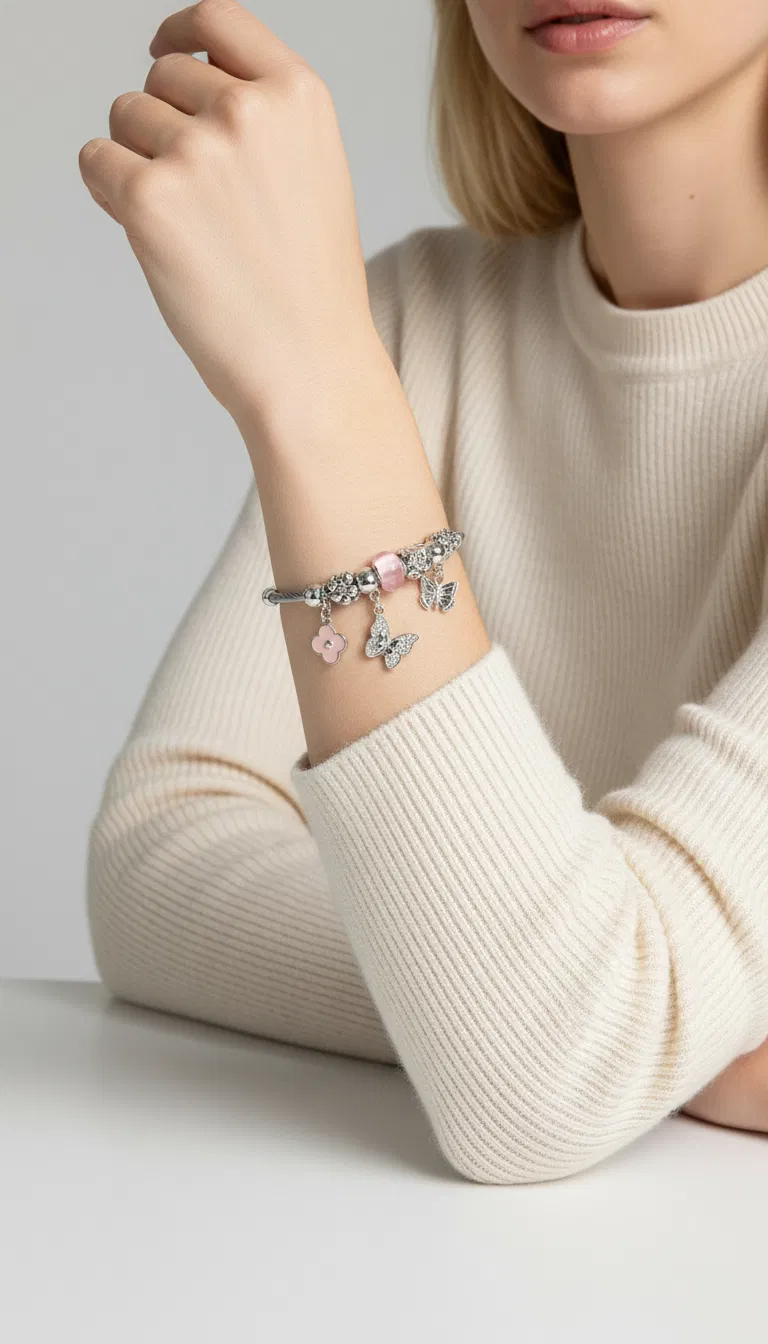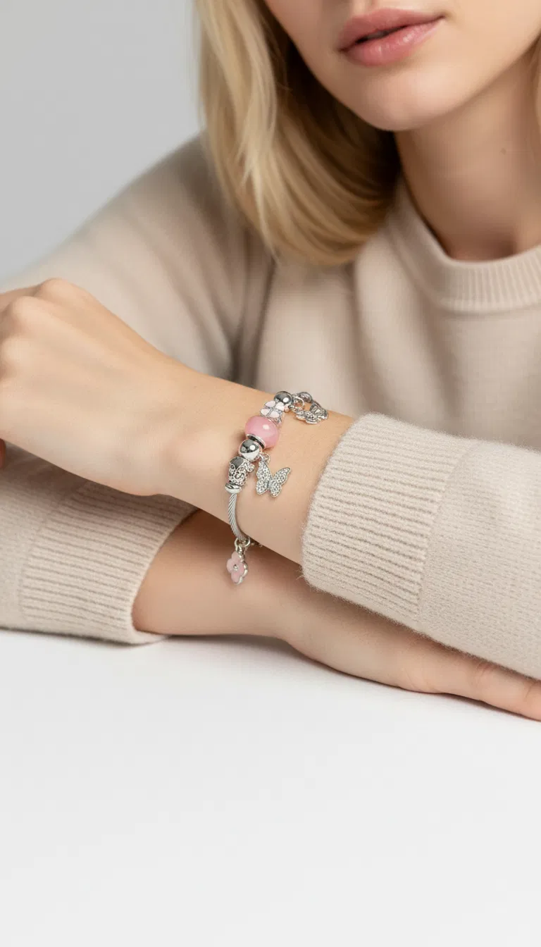 PULSERA ESCLAVA DE ACERO CON DIJES X UNIDAD