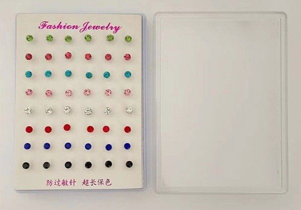 AROS STRASS CON EXIBIDOR X 24 PARES COLORES.