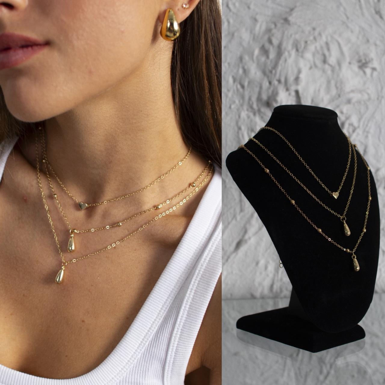 SET DE 3 COLLARES DORADOS X CARD.