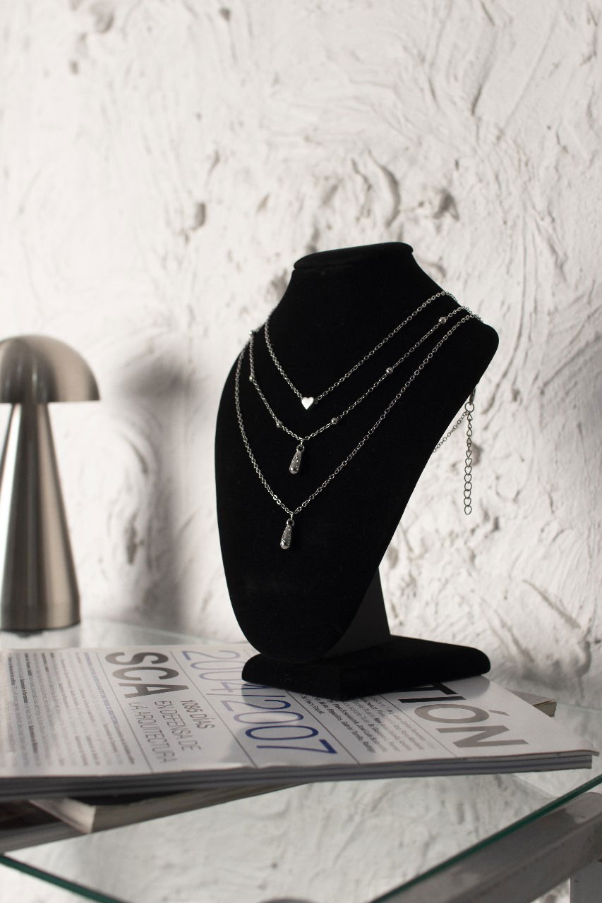 SET DE 3 COLLARES PLATEADOS X CARD.